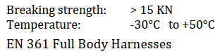 • Miller H-Design 2 points harness with 2 D rings at the sternal point + the back side and mating buckles on chest and legs straps.